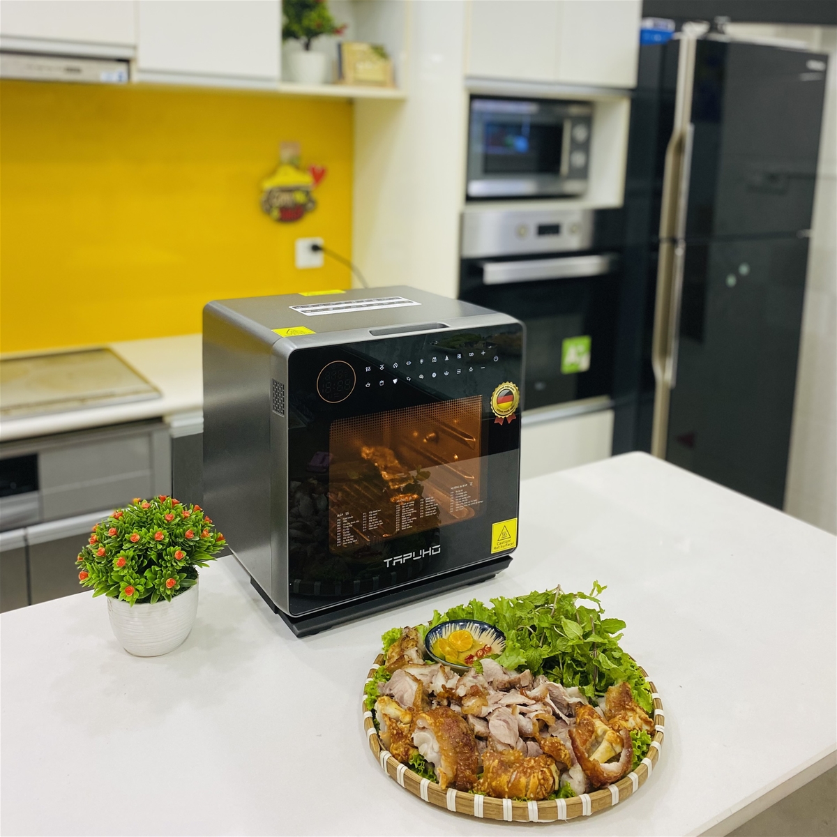 - Nồi chiên hơi nước của Tapuho được đánh giá cao nhờ tính năng đa dạng. các bạn có thể vừa hấp, chiên, nướng…Sản phẩm này sẽ thay thế đến 10 thiết bị nhà bếp của khách hàng.