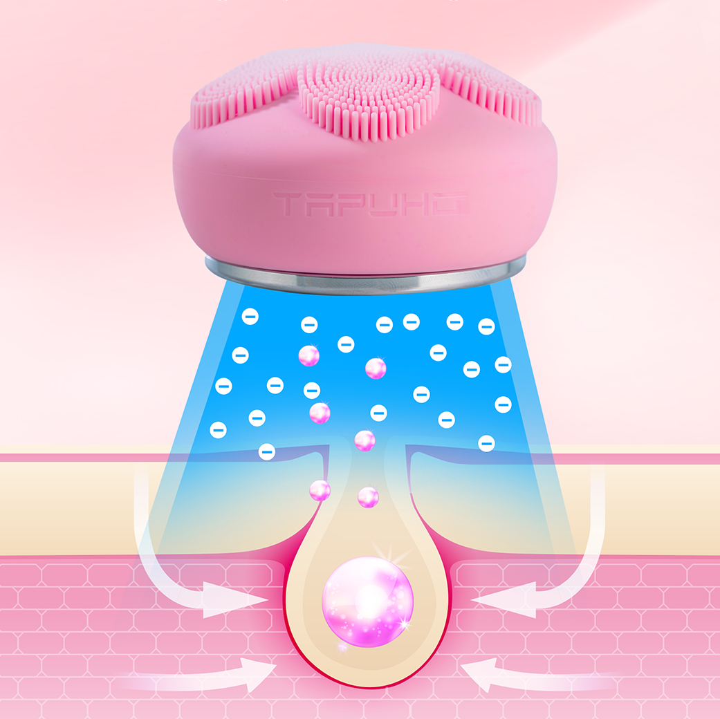ion dương: bụi bẩn nằm sâu dưới da mang điện tích âm sẽ bị những ion dương từ máy massage hút và kéo ra khỏi bề mặt da, từ đó giúp da sạch sâu từ bên trong