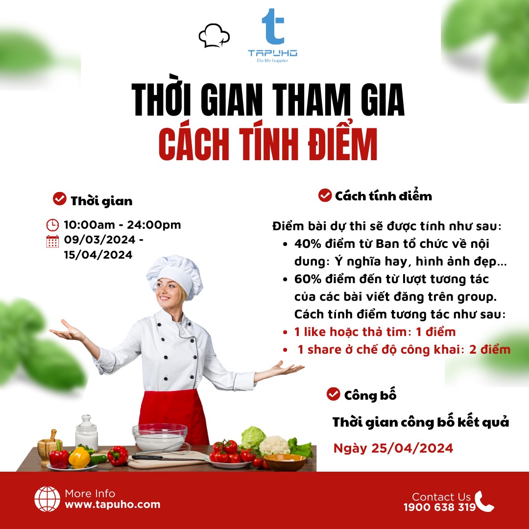Hãy cùng TAPUHO tham gia Cuộc thi: “MÓN NGON YÊU THƯƠNG – ĐONG ĐẦY HẠNH PHÚC” để cùng chia sẻ những món ăn ngon mà bạn đã từng dành cho người yêu thương của mình.