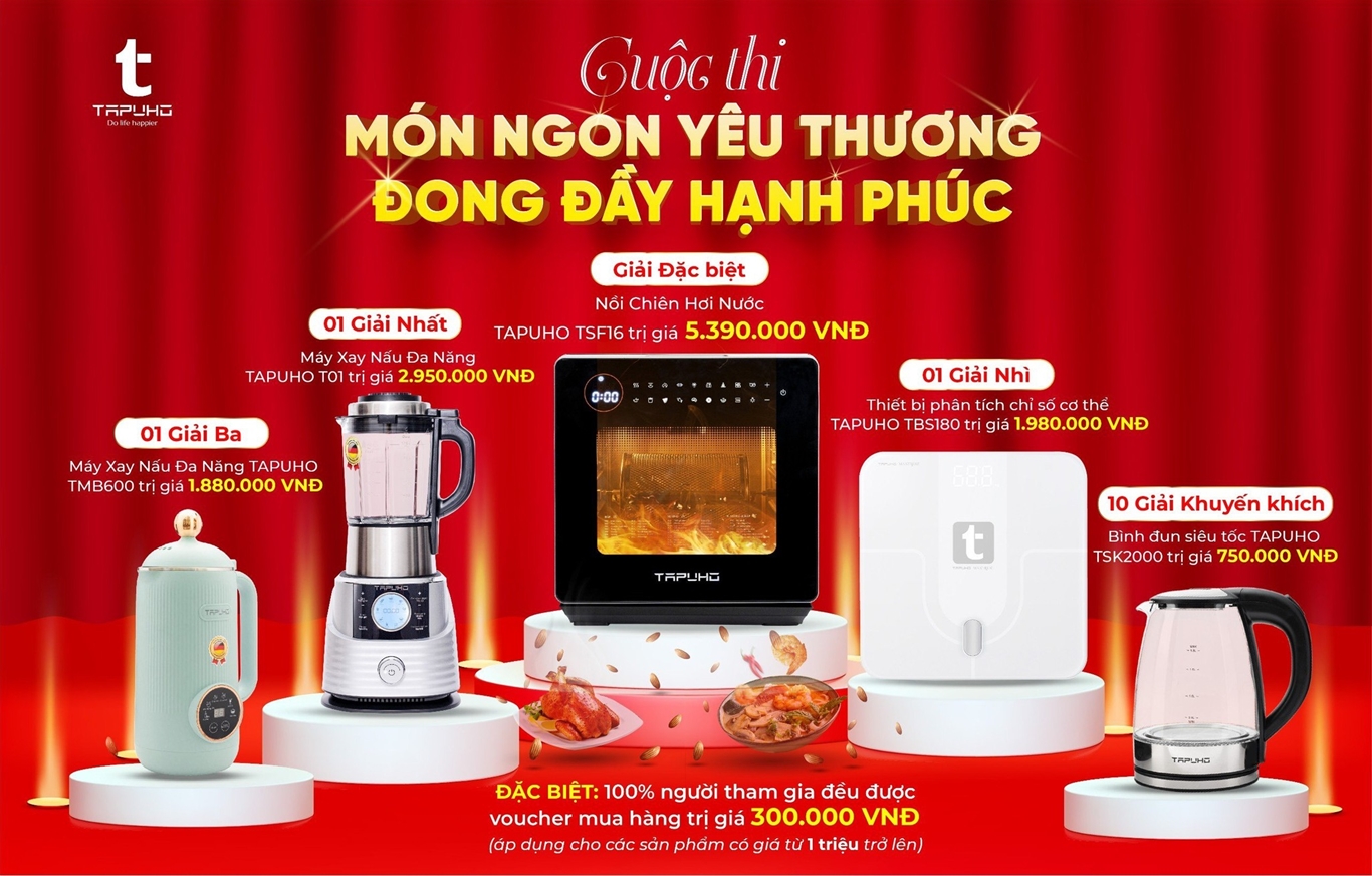 • 10 Giải Khuyến khích: 01 Bình đun siêu tốc TAPUHO TSK2000 trị giá 750.000 VNĐ