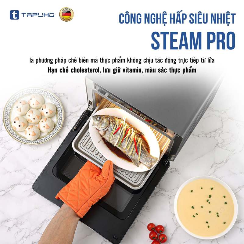 Một trong những công nghệ đột phá mà Tapuho TSF16 sở hữu đó chính là công nghệ hấp siêu nhiệt Steam Pro và chiên không dầu Rapid Air. Thực phẩm sẽ được làm chín trong môi trường kín, hơi nước công suất mạnh giúp thực phẩm chính nhanh và sâu từ bên trong. Từ đó giúp giảm tối đa chế biến để giữ tối đa chất dinh dưỡng.