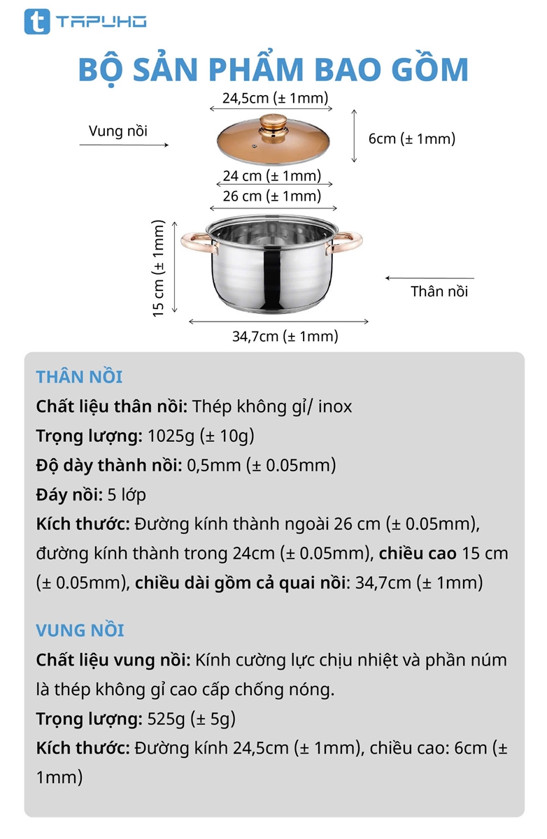 NỒI INOX CAO CẤP TAPUHO TP2625