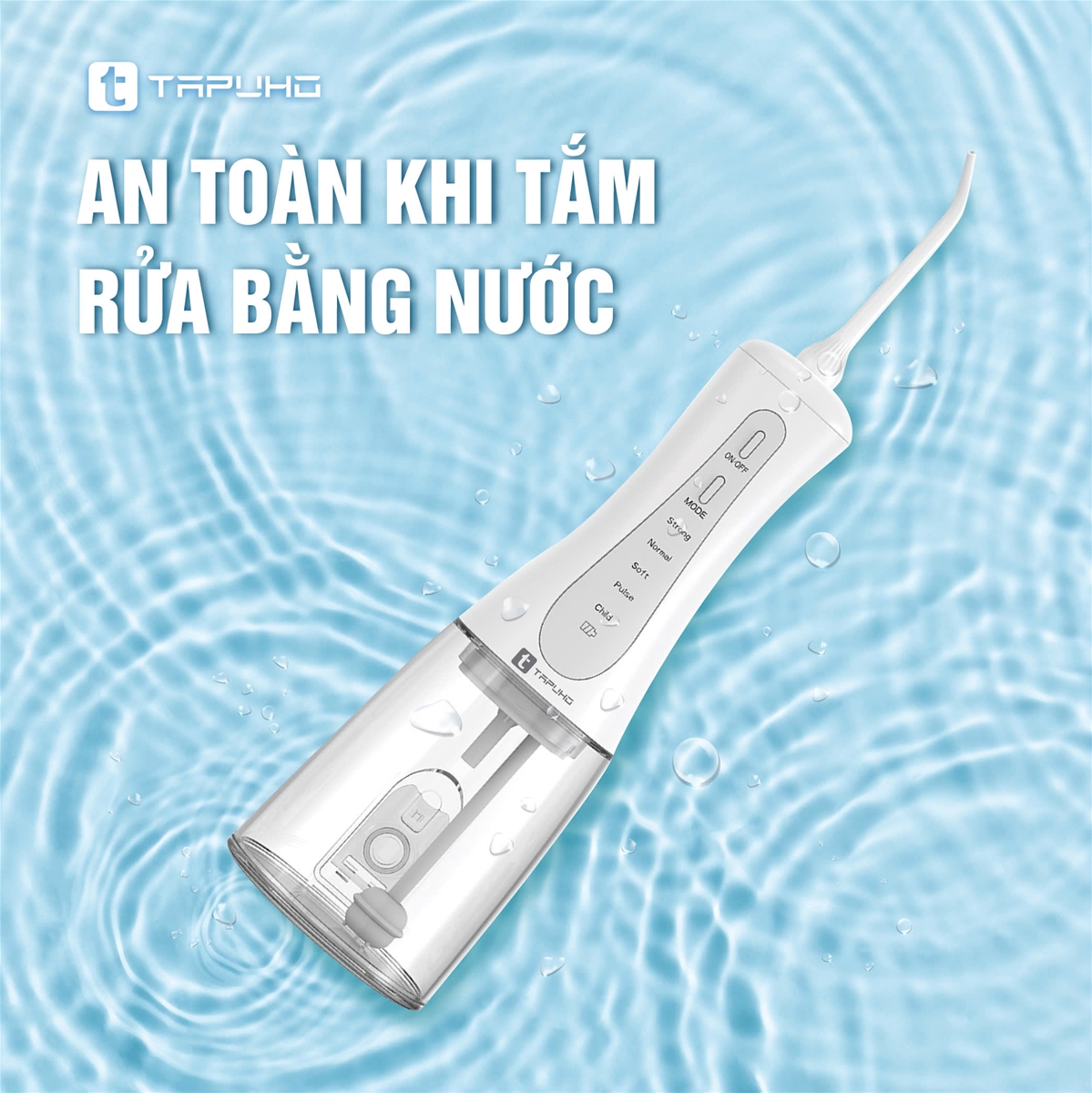 Cơ chế hoạt động đặc biệt: Tăm nước thông minh TAPUHO TWT2025 được thiết kế với cơ chế phun đứt đoạn theo từng nhịp. Các xung động nước tác động vào nướu và len lỏi qua từng kẽ răng, giúp làm sạch và mát-xa nướu hiệu quả mà không gây tổn thương cho nướu. Điều này đảm bảo răng miệng của bạn luôn được vệ sinh kỹ càng và khỏe mạnh. Đặc biệt, máy còn được thiết lập cơ chế khởi động tiếp sức 1 giây rất an toàn cho nướu: khi máy bắt đầu hoạt động, lực phun sẽ bắt đầu với lực phun thấp để nướu làm quen với lực nước phun, sau 1 giây tiếp sức lực nước sẽ trở lên bình thường.